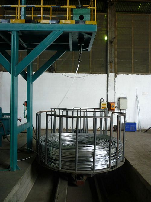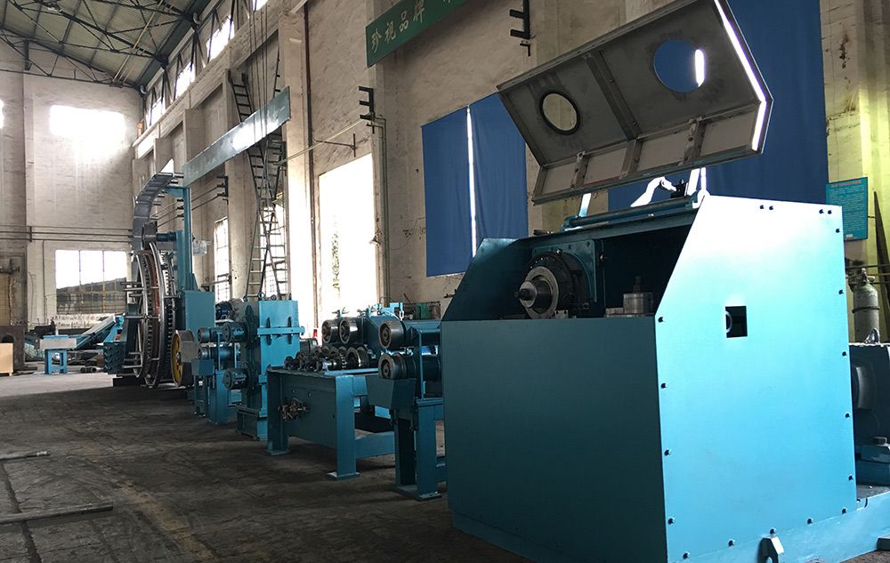 连续浇铸机、铸锭牵引机、滚剪机、校直机、主动喂锭机、两辊式油水分离轧机(两道,独立驱动)、三辊Y型连轧机(十四道,集中驱动)、乳液冷却润滑系统、无油自动成圈收杆机、电控系统。